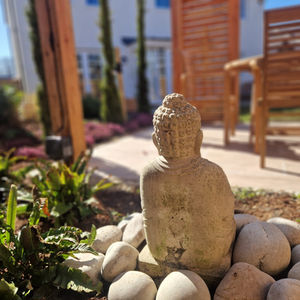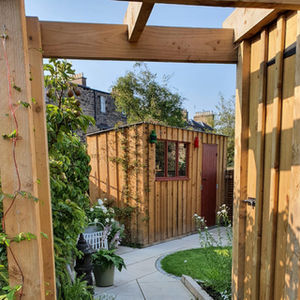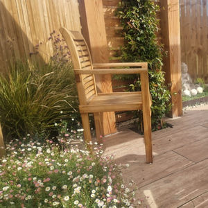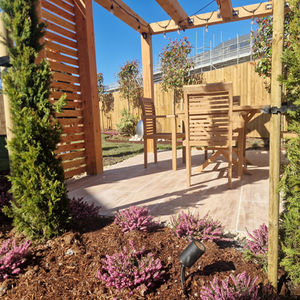 This space was designed and constructed within a compact area to create a new carpenter's workshop garden. The space was thoughtfully crafted to provide a serene setting for contemplation, featuring designated seating areas. The landscaping scheme incorporated a loose, natural aesthetic, highlighted by a curved rustic stone wall adorned with rockery planting, creating a harmonious and visually appealing environment. This project exemplifies the seamless integration of purposeful design elements within a limited space.